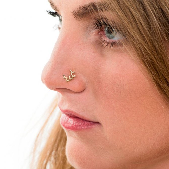 In India, women put earrings by piercing the right wing of the nose, and men - the left wing, as a symbol of femininity and masculinity. It was believed that piercing on the right side would give men strength and women ease childbirth. Also in India, the tradition of nose piercing is closely related to Ayuverdic medicine.