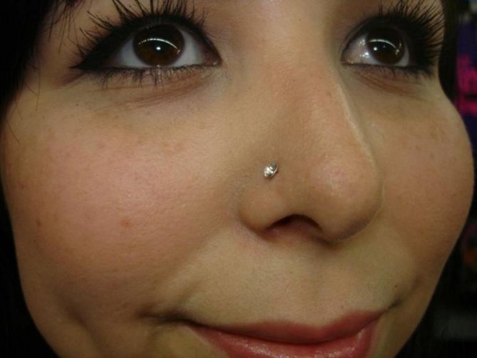 After the piercing, jewelry is inserted into the hole, the clip should fit securely to the surface of the skin, but not to squeeze tissues. Piercing the wings of the nose, as a rule, does not require anesthesia. If you pierce the cartilage part, anesthesia of the area is mandatory.