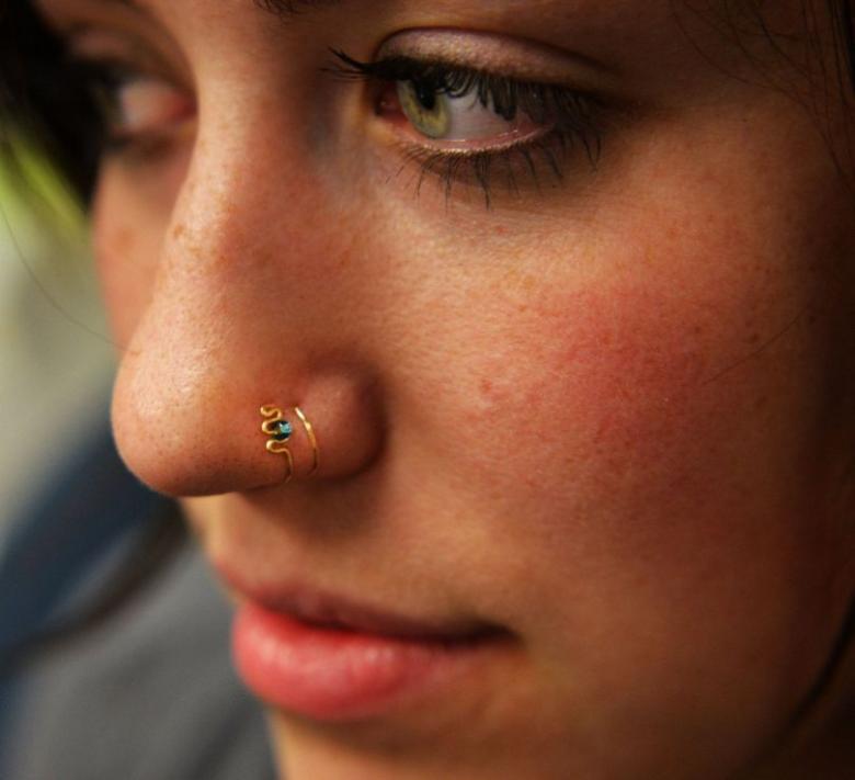 - Nostrils. Small earrings, reminiscent of carnations, but with a curved end, are used to decorate the wings of the nose.