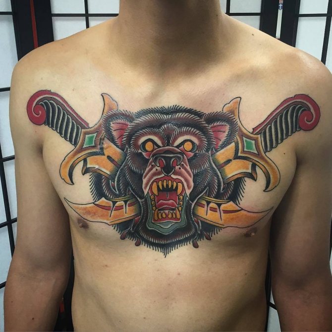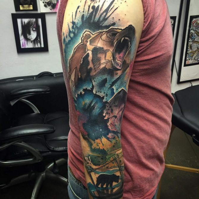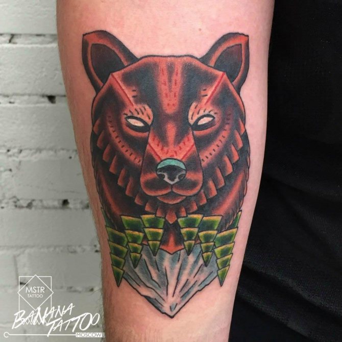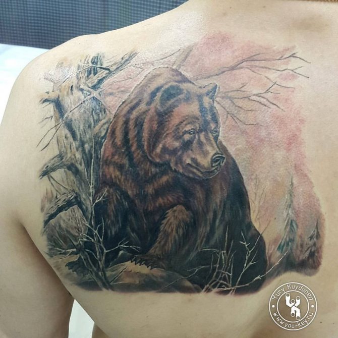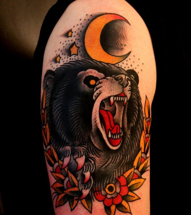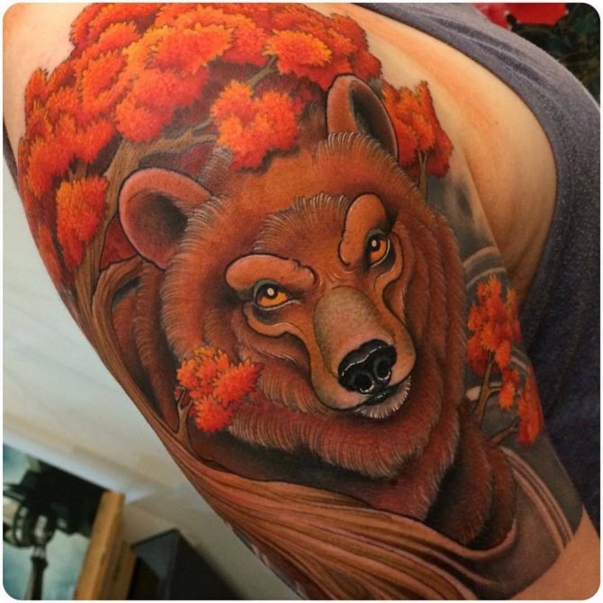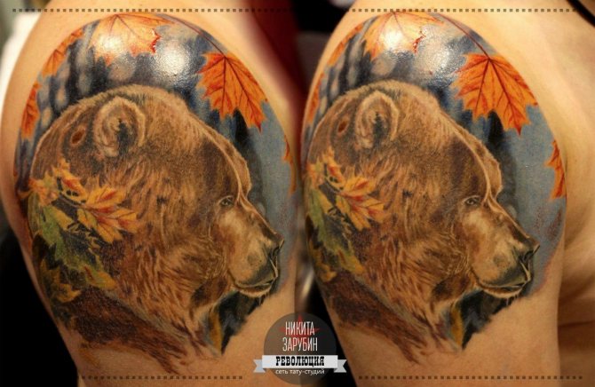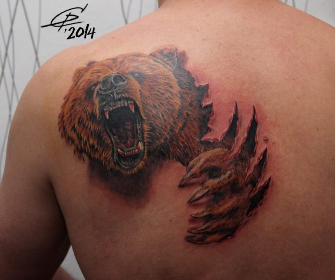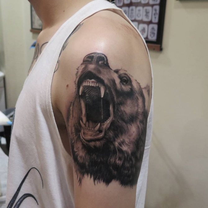 Tattoo with a grizzly bear symbolizes the ability to cope with any danger, determination and fearlessness.