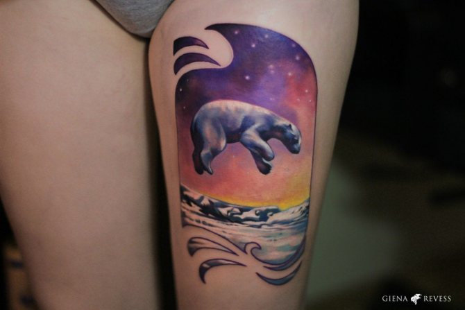 In tattoos, the bear symbolizes the centuries-old traditions of different peoples. His ability to hibernate for the winter, and safely awaken in the spring makes the bear a symbol of resurrection and the beginning of a new life. But each nation has its own characteristics and its own special interpretation of this symbol.