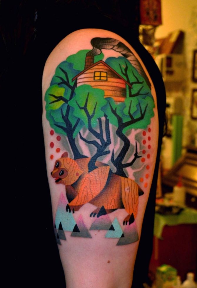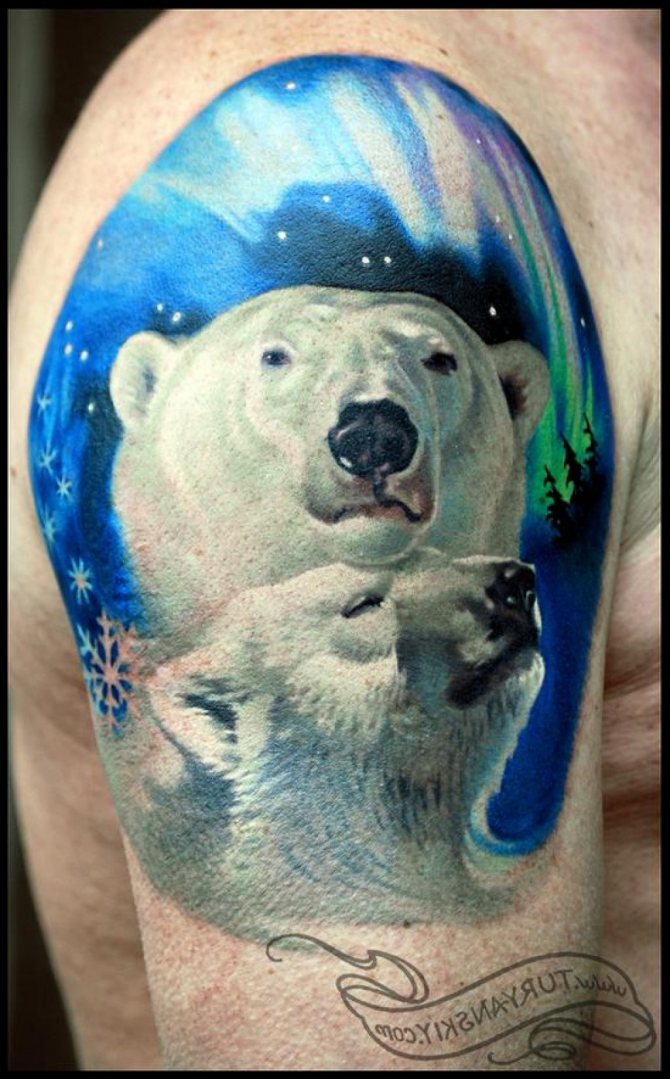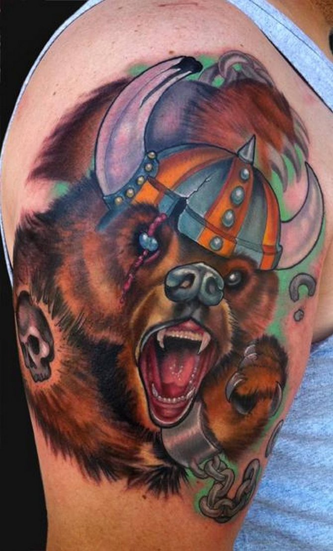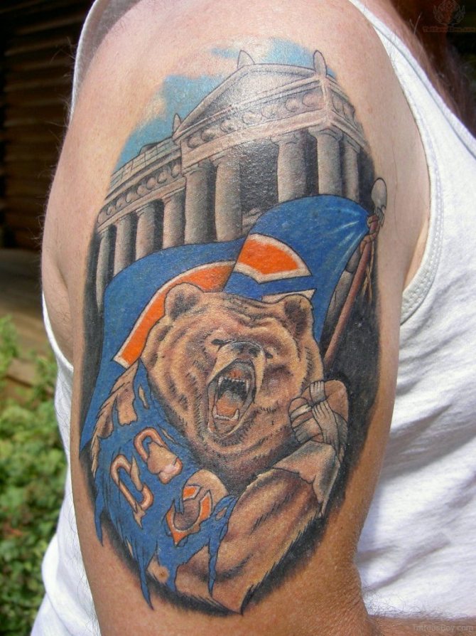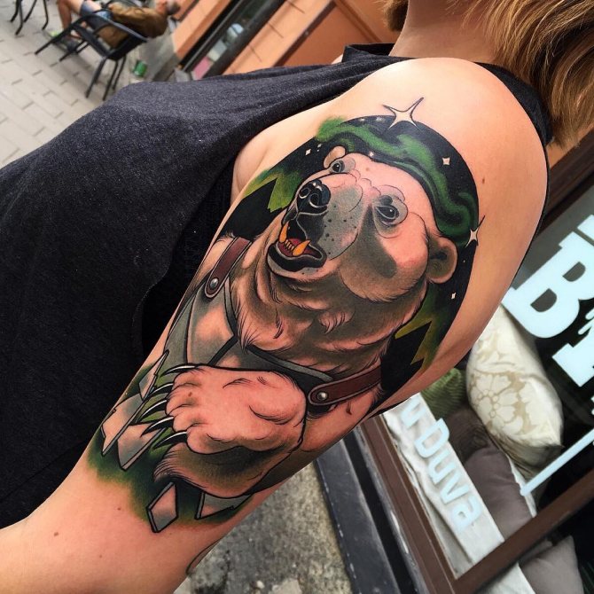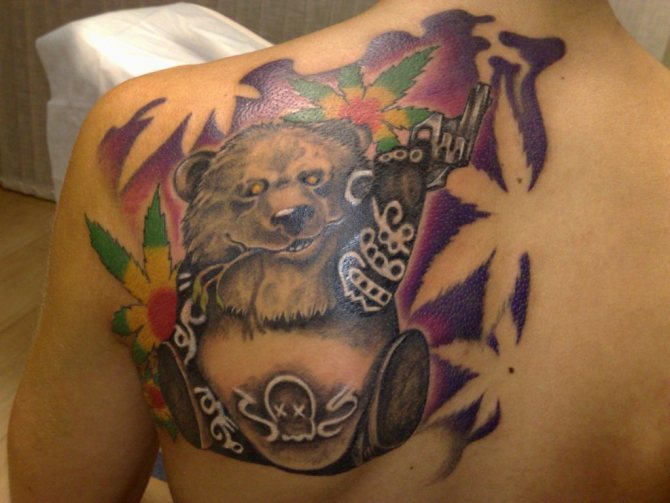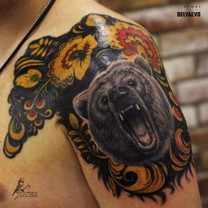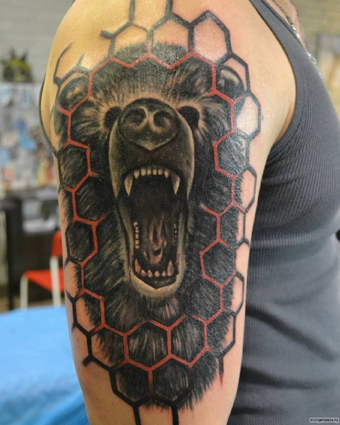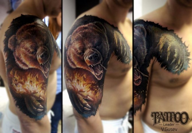 The first body art relating to the king of the taiga, were tattoo paw bear on the shoulder of the Celts. Gradually they were complemented by an image of the bear's head, or the entire animal on the shoulder and forearm.