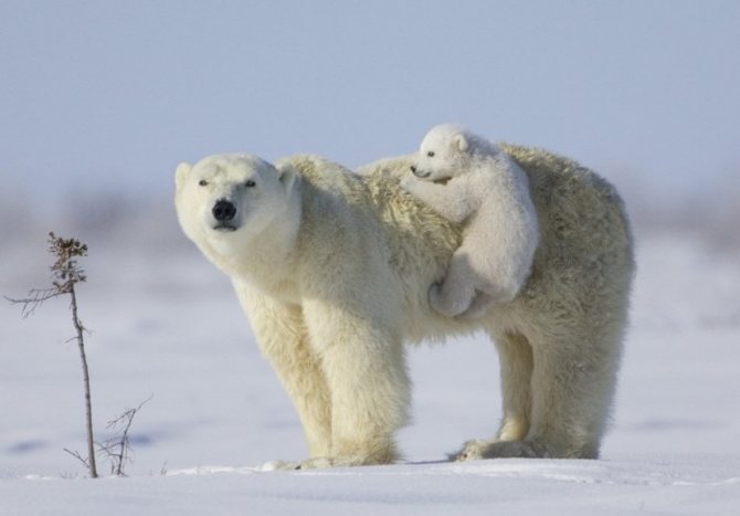 On the sole of the paws, the fur is very thick, which allows the bear to easily walk on the ice without slipping.