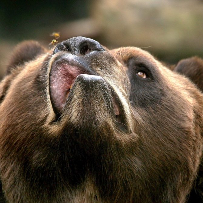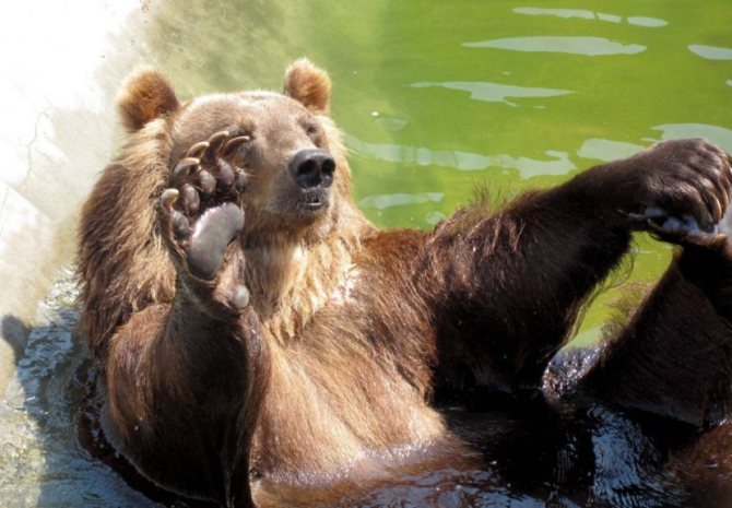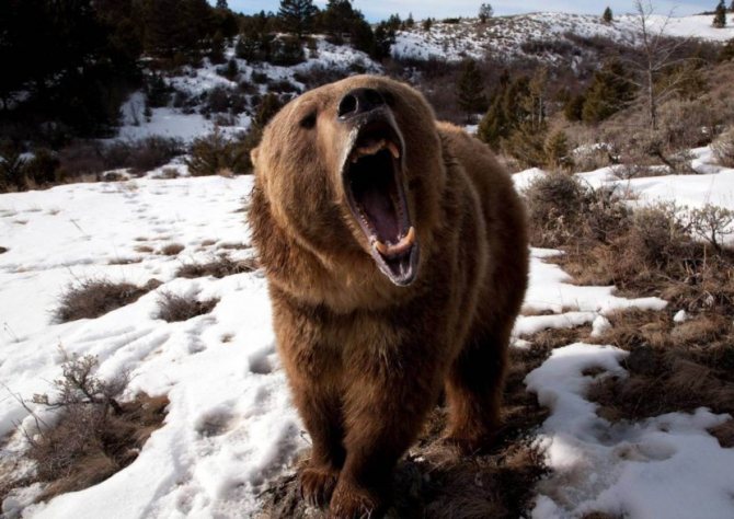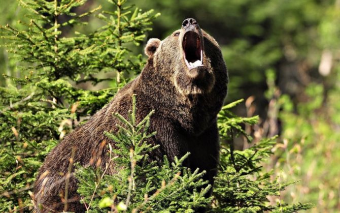 The bear can reach speeds of up to 50 km/h, with the help of large and sharp claws can easily climb trees, tear up prey, get plant roots from under the ground.