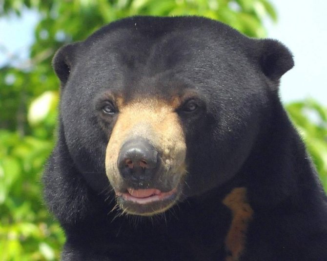 Not large in size, the male bear reaches a length of up to 1.7 m, and the female is even smaller. Covering the body of a bear with dark brown or black silky hair, this bear also has very large ears and a sharp muzzle.