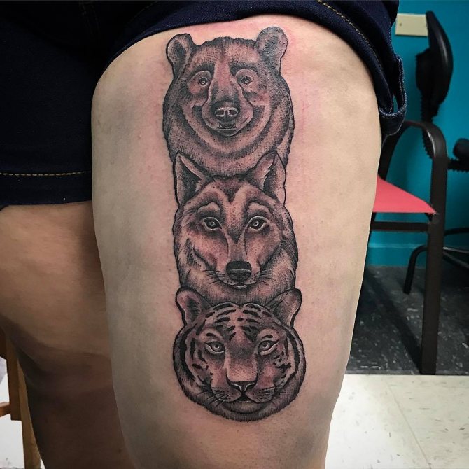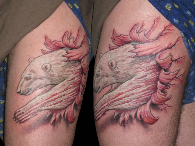 In Egypt, a tattoo with a bear could apply to the body exclusively pharaohs. He symbolized limitless and eternal power over people. In India, the bear was used as a title, the common people had no right to do tattoos with this animal.