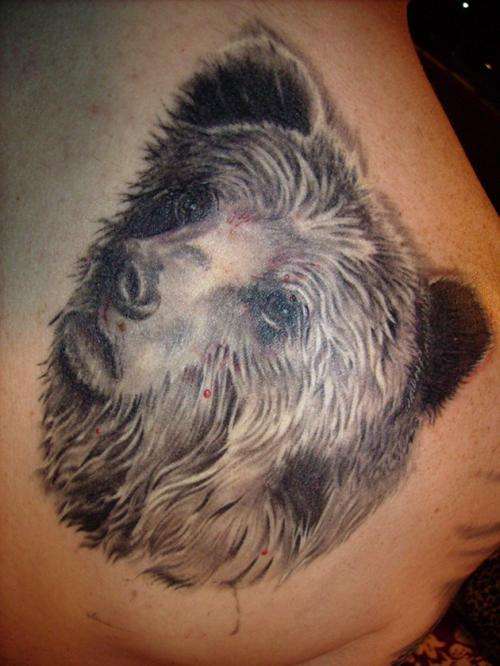 Tattoo with a bear is rarely performed in black and white colors. The real realism of the image will give only colored pigments.