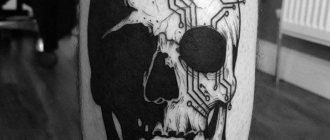 The tattoo in this style is not suitable for all people. It has a heavy semantic load: the story, rooted in criminal gangs, is dark and mysterious.