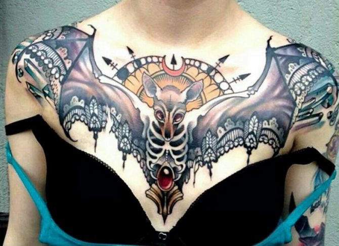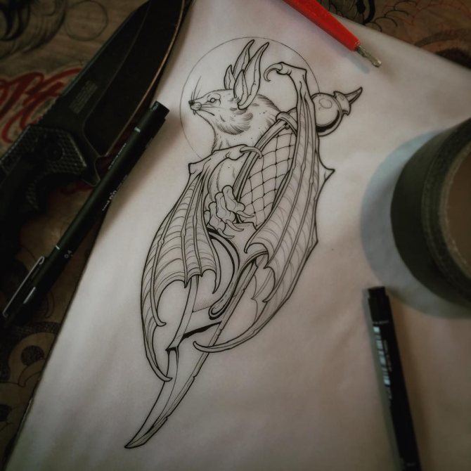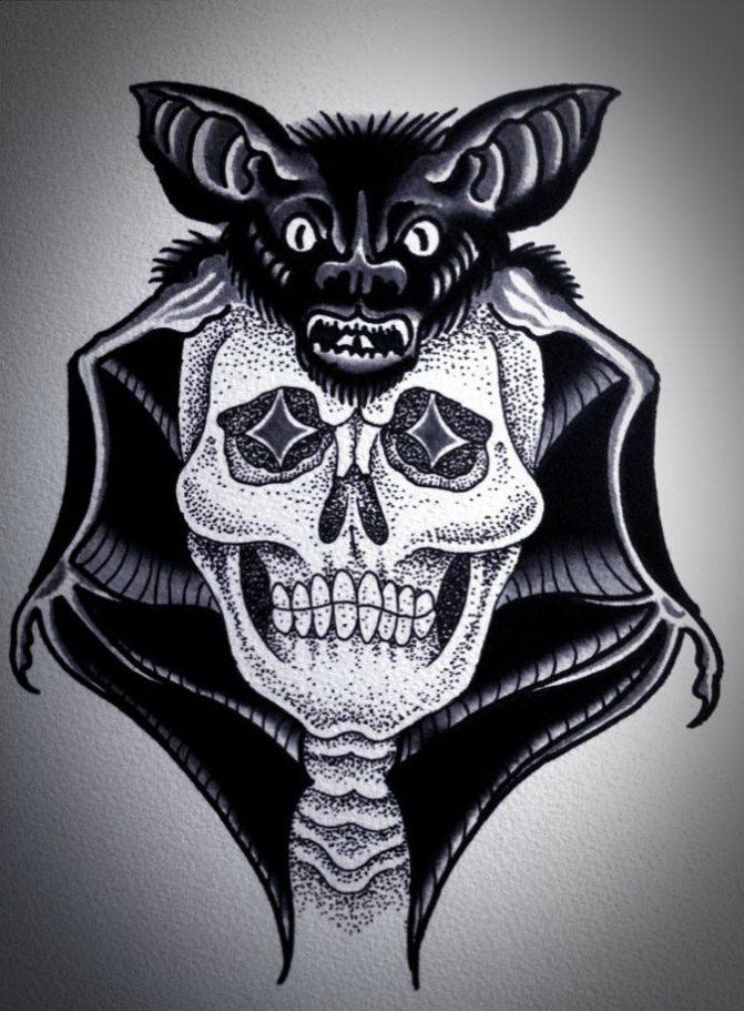 A bat is an extremely interesting and in some ways unique animal, because this is the only mammal that can fly. In general, the bat tattoo has several meanings, which can be divided into two opposite categories: good and negative, with the second option considered more common.