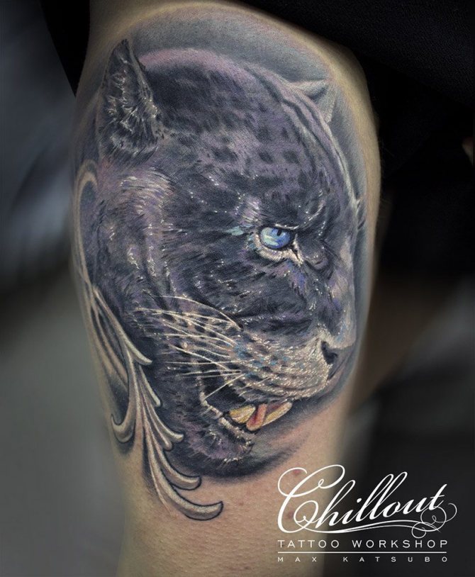 The panther is a beast that combines the qualities of a predator and maternal affection. A great delight in the art of tattooing is the panther, which gracefully sneaks around. This image is associated with the transience and fragility of life, the rapidity of human existence, symbolizing that life can end at any time. At the same time, the tattoo will be a reminder that the end is imminent. It should encourage a person to be active. The black panther is the eyes of the night, synonymous with grace and feminine charms. The predator, which seems to sneak up, reminds us that life is not eternal, everything comes to an end. Such a tattoo emphasizes that precious time should not be wasted and should not be wasted on trifles. The image can also mean helplessness, transience and an unexpected threat.