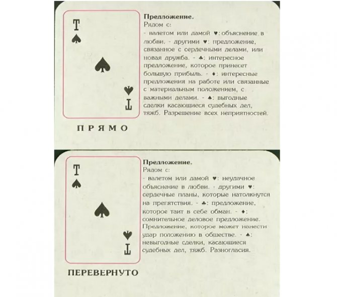 With 10 of spades - indicates an unexpected profit. With others - the favorable resolution of all pending cases, a favorable outcome of the situation. With diamonds - tempting business offers that will bring good dividends.