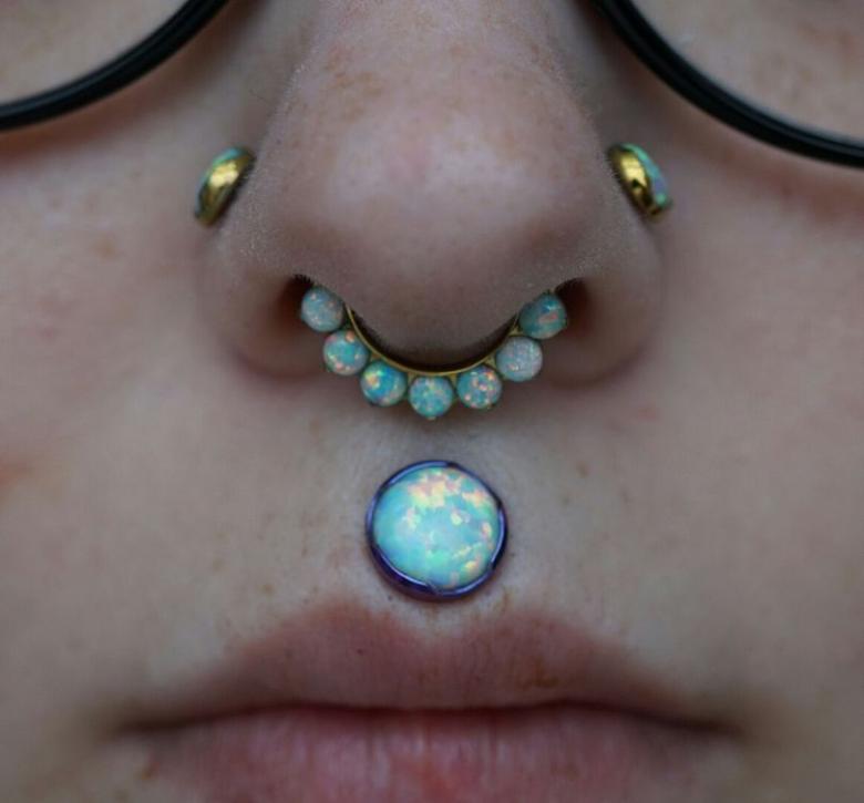 Silver and gold are not recommended, especially immediately after the puncture, as they can cause suppuration and abscesses. After the puncture area has healed and the canal is formed, you can insert more complex jewelry - with crystals, rhinestones, flowers, beads. If the jewelry changes color (usually the silver changes colour), it is advisable to change it for another, by consulting an experienced piercer.