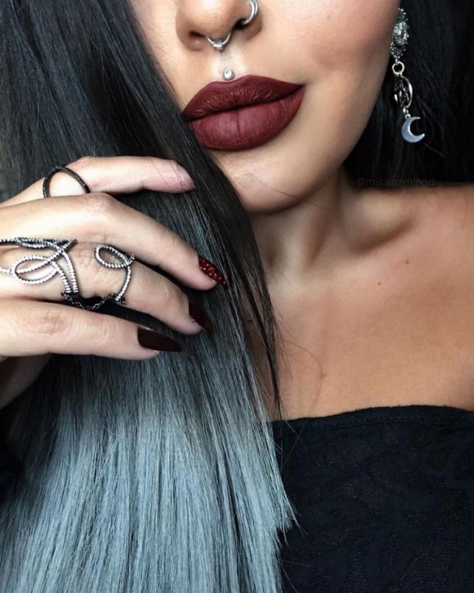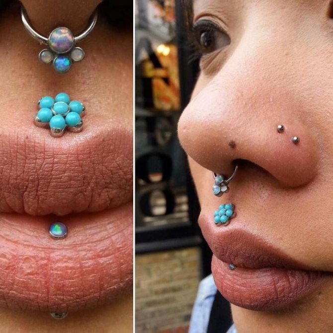 You can also distinguish between vertical and horizontal piercing, piercing directly to the lip and its frenulum - the name speaks for itself. Other variations are also possible, depending on the wishes of the individual. So it's best to pre-study the photos of already existing examples to understand how this or that piercing will look.