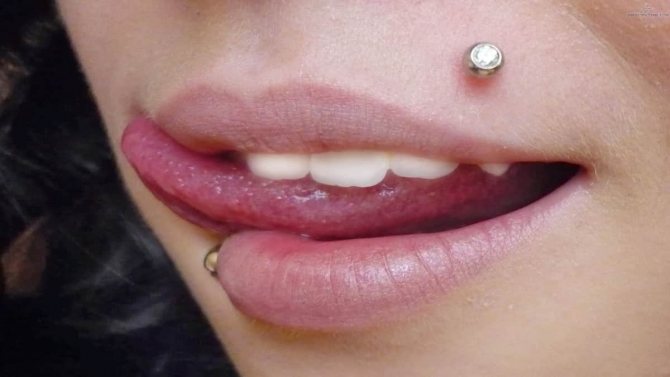 After the lip piercing is performed, for some time it requires special care. In particular, it is recommended to rinse your mouth several times a day with an antiseptic, as well as to make compresses on both sides of the piercing.
