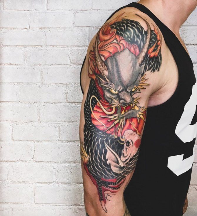 Tattoo black carp can be depicted together with the dragon - this is the embodiment of Chinese legend. There are also tattoos where the fish is depicted with the dragon's head.