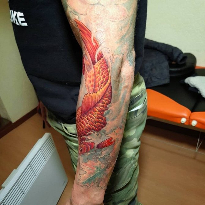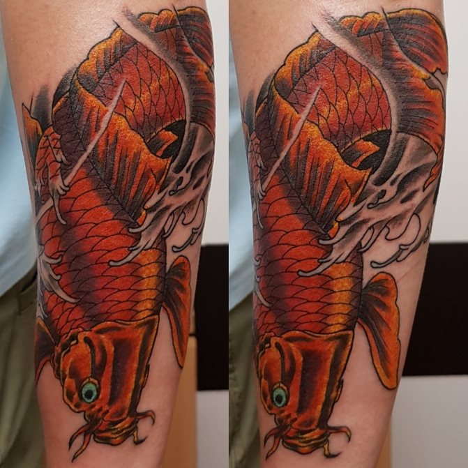 In order to determine what a carp tattoo means, it is worth noting the admiration for the longevity of the fish. Buddhists considered the carp the embodiment of courage and independence.