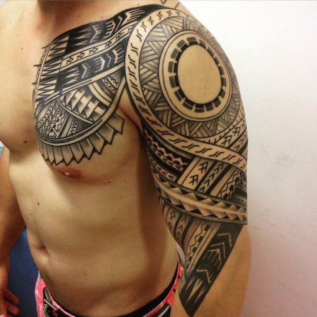 Make a beautiful Samoan tattoo can be on any part of the body. However, most often the desired place of application is the chest or the back.