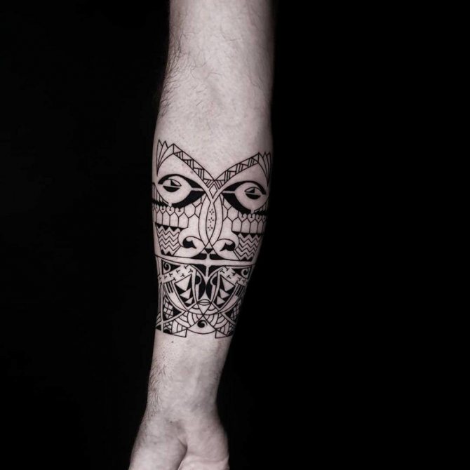 - Eyes. In traditional tattoos, the eyes of ancestors are often depicted, looking at the man from the netherworld. They serve as a kind of incentive to achieve their goals and live honorably, so as not to feel ashamed of the past generations.