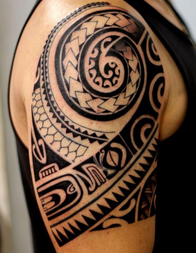 Samoan tattoo means courage, bravery, freedom, extraordinary thinking and charisma. Such images are necessarily made by strong personalities who know their worth and are confident in their own strength.