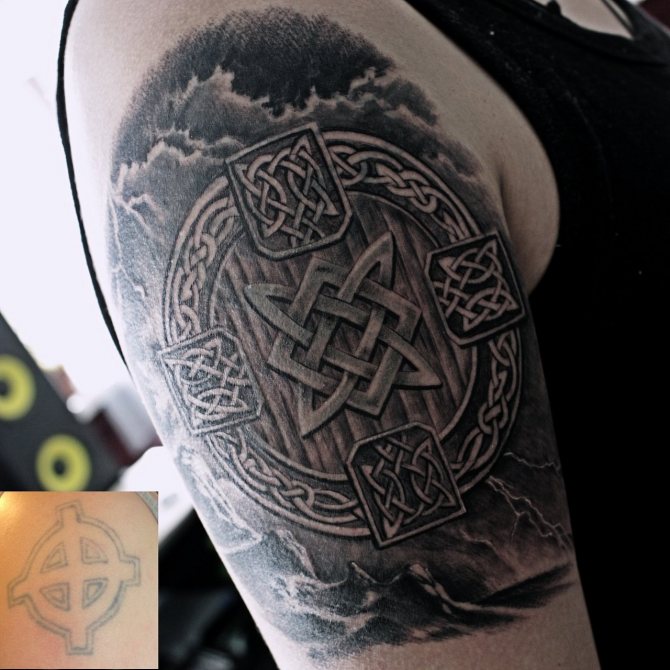 Tattoos with a complex composition can take up a lot of space - the most ambitious are better depicted on the back. Celtic ornaments or "animal style" patterns look spectacular on the arm or shoulder girdle. On the chest looks good paired plot, such as two solar signs.
