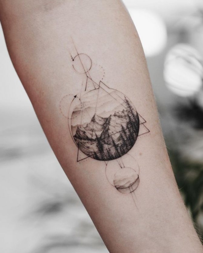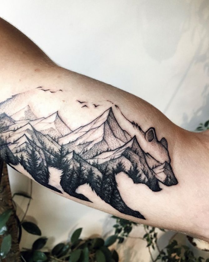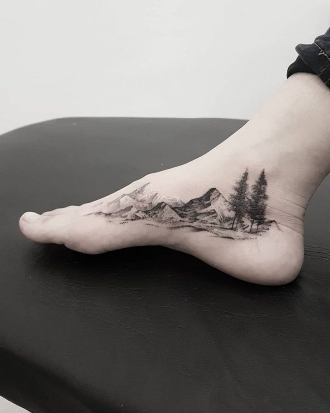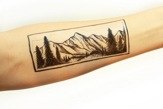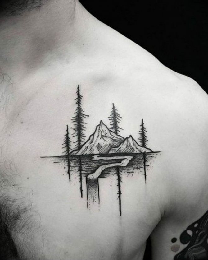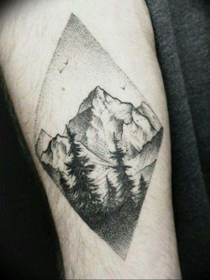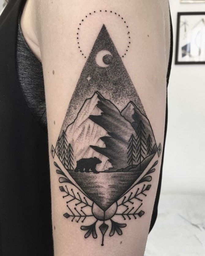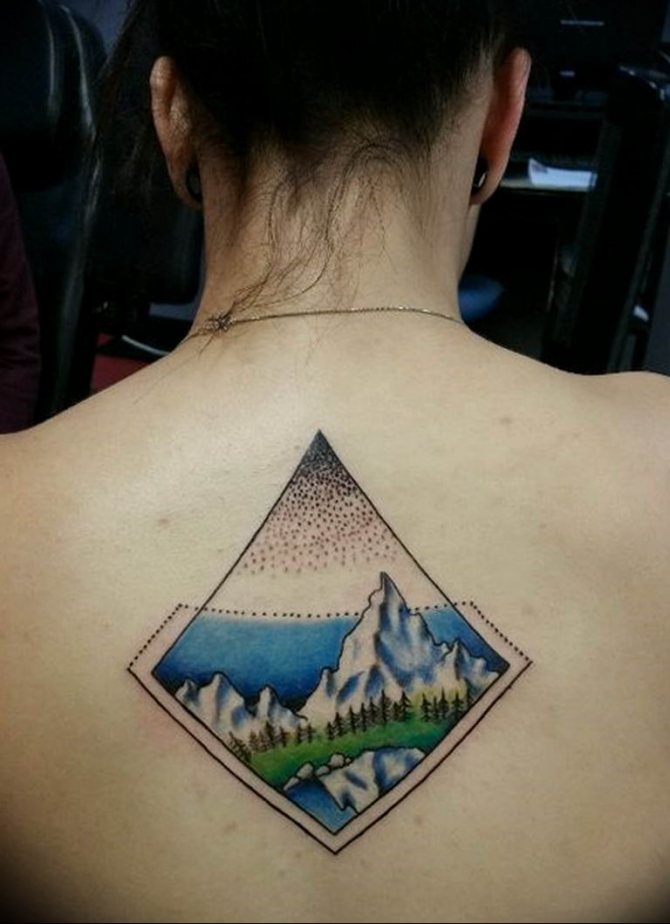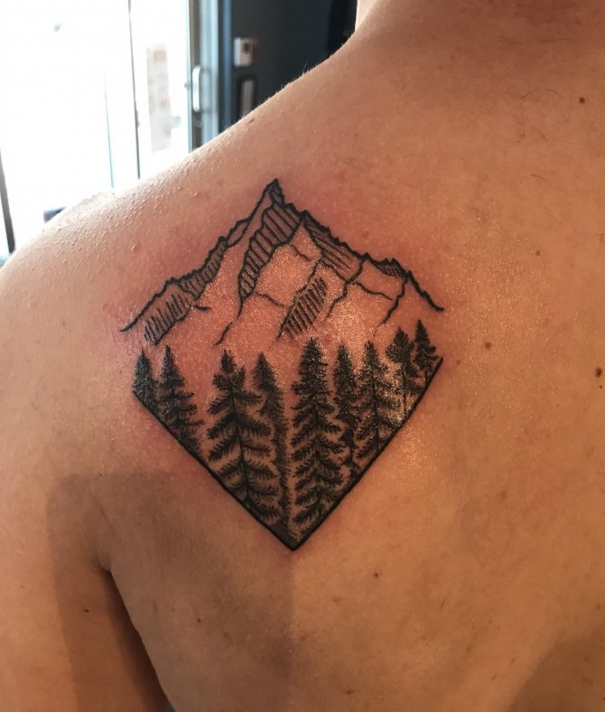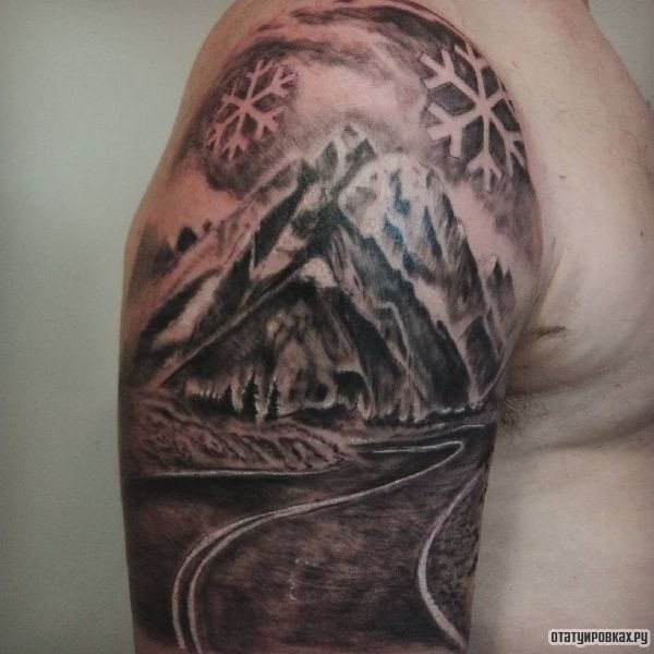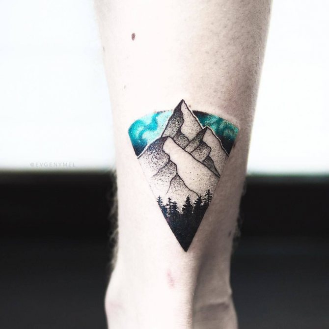 - tattoo with the meaning of the mountain, as the dwelling place of the gods and celestials, can symbolize the desire for material success, the desire to break into the elite of society and take its place in the "divine hosts;