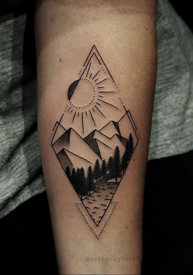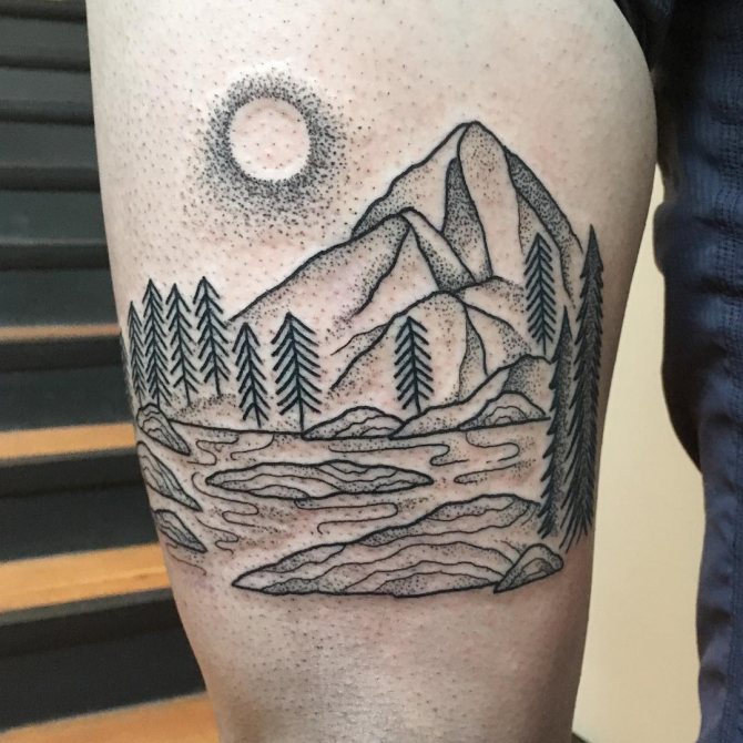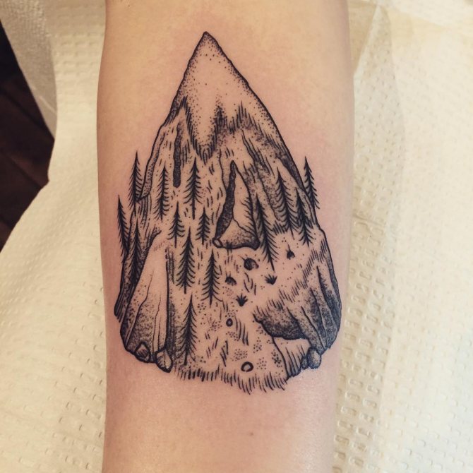 - The tattoo with the mountain can make and people engaged in occult practices, because in many legends and tales, the mountain is a gathering place for witches, sabbaths, and therefore a place of power;