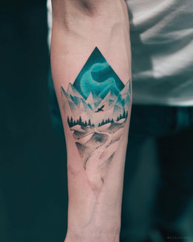 As mentioned above, the mountain is reflected in many cultural traditions associated with the world order and sacred knowledge. This and the ancient Olympus - the abode of the gods, and Valhalla - the place of posthumous existence of brave warriors in the northern tradition, and the five sacred mountains of China, each of which is home to a deity. The list could go on and on. More importantly, what is the mountain in the symbolic consciousness of modern man, what value it can carry for the person doing the tattoo with its image.