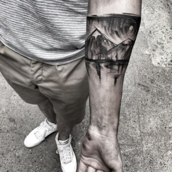 The most popular of the symbolic meanings of the mountain in tattoos is probably not even related to its mythological history, but to its physical properties. The majestic, enduring, having survived the changes of all human epochs and most likely capable of outliving humanity itself as a species, the mountain represents strength, inviolability, power, invariability. In this sense, the mountain is a tattoo for the strong and confident people, standing firmly on their feet and clearly knowing what they want from life.