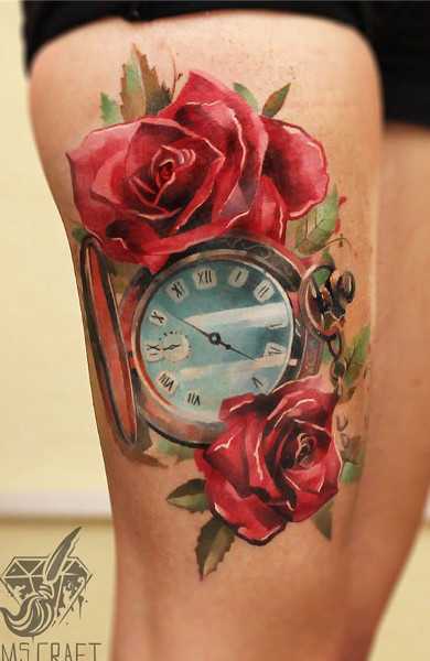 The meaning of the clock tattoo is twofold. The clock can symbolize the fleetingness of time for people, the transience of human life, it is a sign that human life can stop at any moment and no one knows their future exactly.