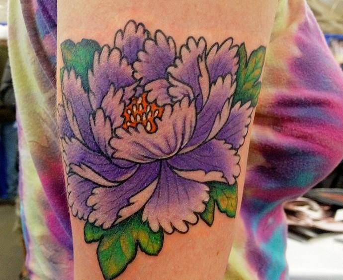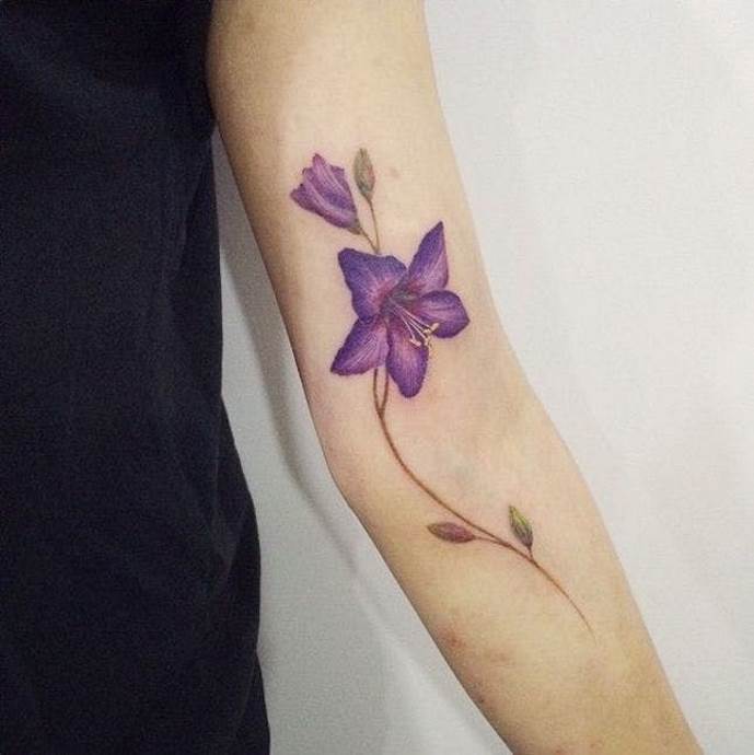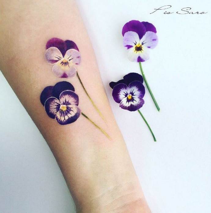 Violet tattoos look very spectacular in the technique of realism. The style is characterized by saturated colors, detail, the game of shades. The image looks so natural that it cannot help but attract admiring glances of others.