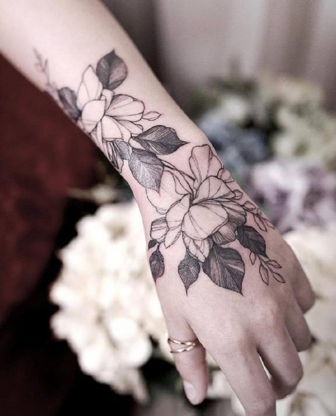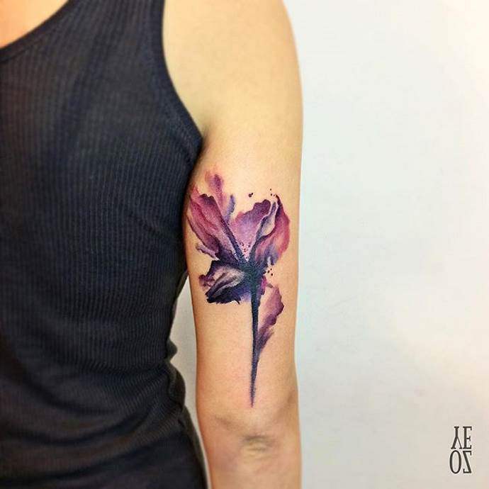 For floral themes also suit the style of watercolor. In contrast to realism, the composition conveys an artistic view of the image object. Tattoo looks gentle and airy due to pastel tones and blurred outlines.