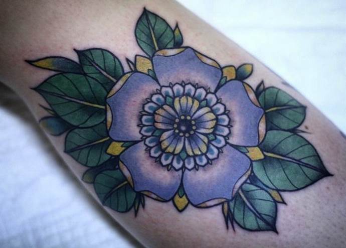Men put their own meaning into them. Violet tattoo symbolizes simplicity and pure thoughts. Such guys like humble women. And they themselves do not like to be in the public eye. Kind and responsive character - the main advantage of such a man. The man is always ready to compromise. He treats his other half with increased attention and care.
