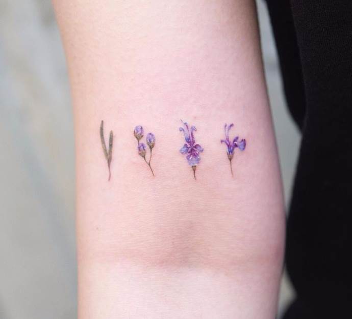 For the fair sex, the violet tattoo is a real decoration. It emphasizes the tenderness and femininity. Such a picture is usually chosen by romantic and sensitive girls.
