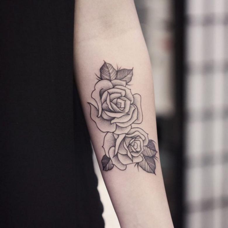 Fans of monochrome tattoo masters usually recommend the technique of Dotwork or minimalism. Large tattoos will look appropriate on your arm, back, or thigh. For small sketches, ribs, wrist, shin or scapula will be suitable.