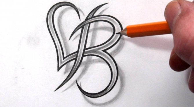Applying letters to larger areas can be a problem. Drawing on the stomach, back or thigh requires a richer composition. The letter will need a bright and original accompaniment in the form of patterns, drawings, plots. Most often such drawings look like tongues of flame, gusts of wind with foliage, waves and so on. It is important that the picture densely filled the entire area. The original option would be a key phrase, beginning with the cherished letter. In such a composition, the main letter should be brightly highlighted.
