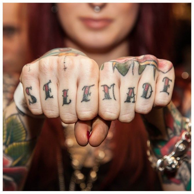 Tattoo inscriptions on the hand (men's natal drawings differ more restraint than women's) look the most spectacular, if they are supplemented with secondary elements.
