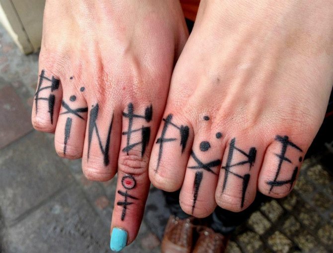 - The design of tattoos on the fingers of girls is more subtle, more lightweight. Guys have a more brutal, darker, thicker lines.