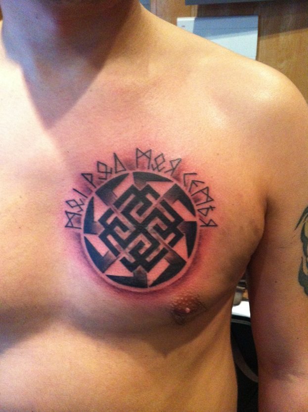 Tattoo with Perun amulet allows you to reveal the ability of the owner, to provide spiritual balance, and protect against the evil eye and spoilage.