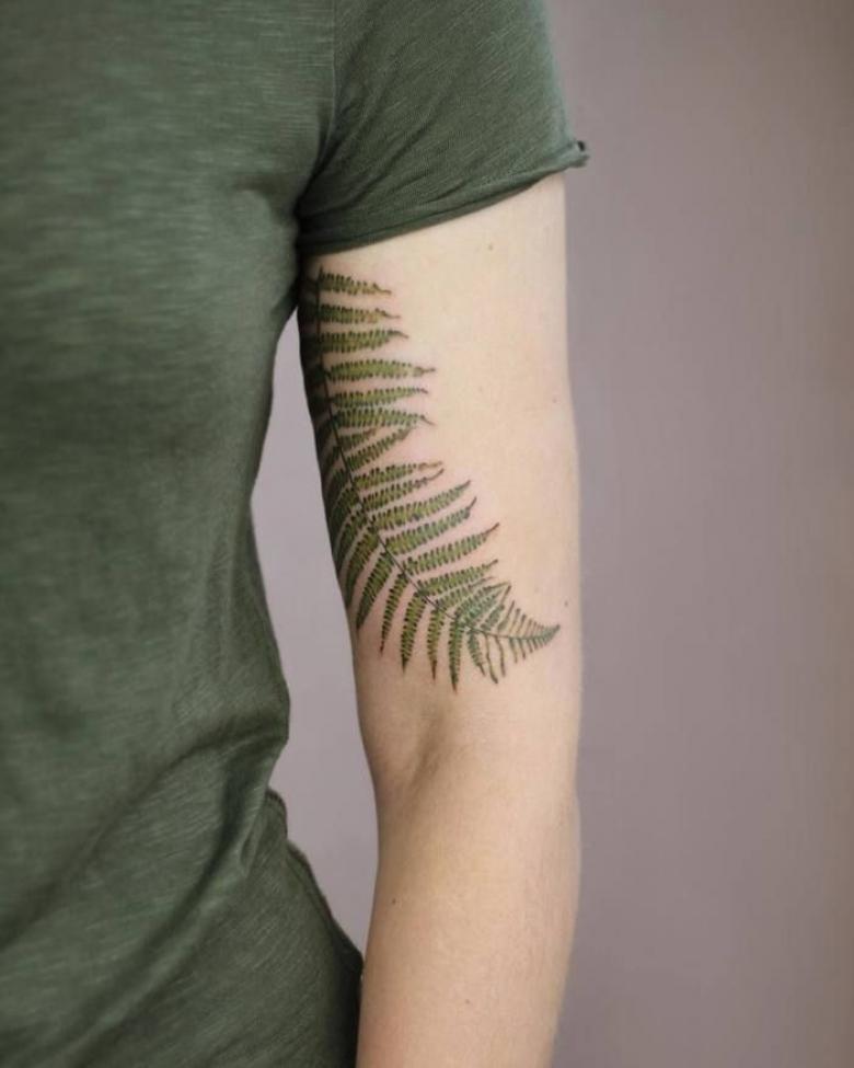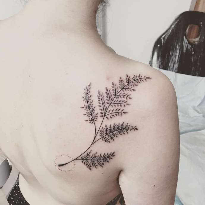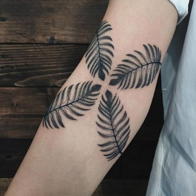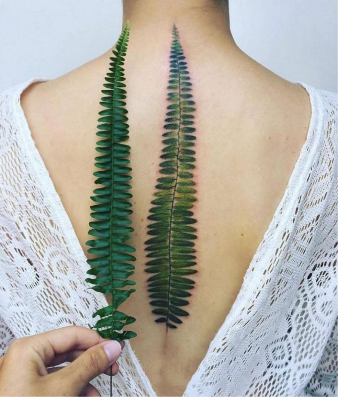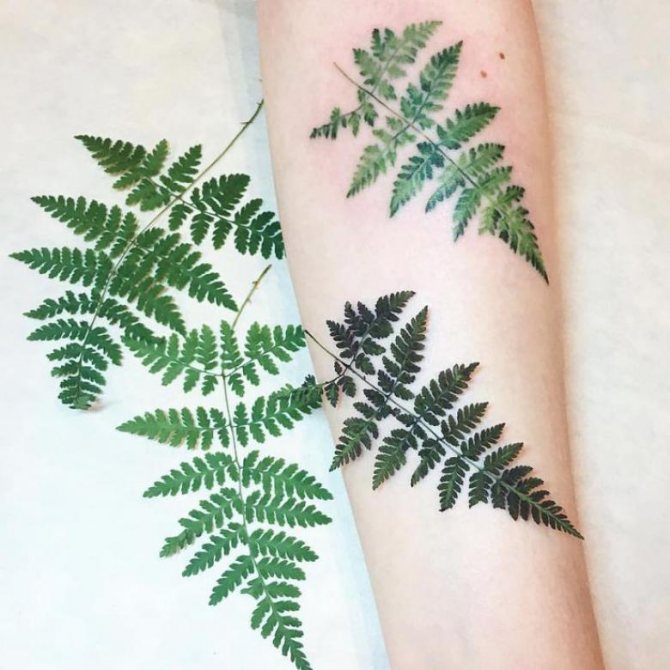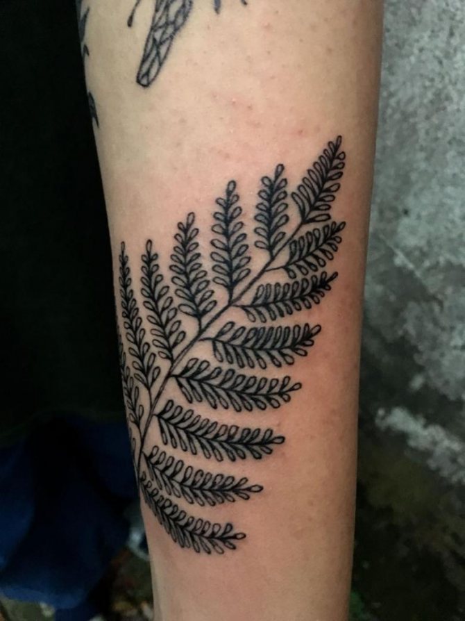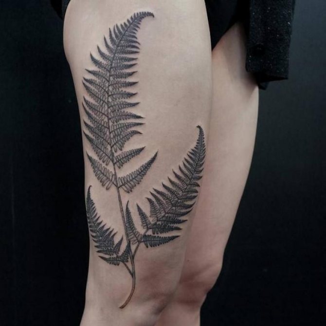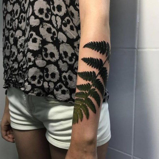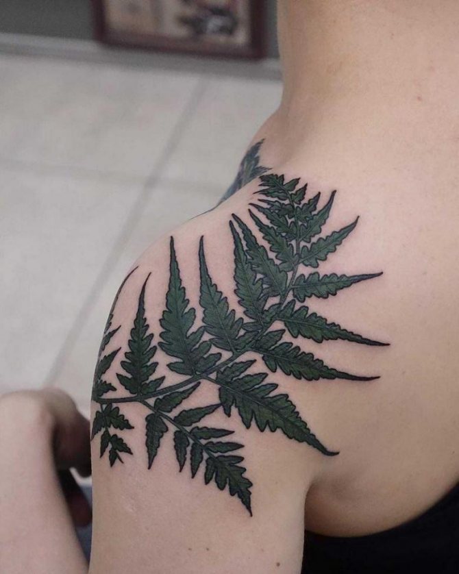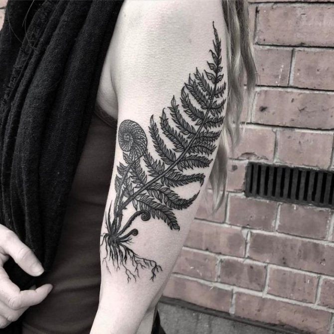 Tattoo with a fern on the shoulder of a girl can mean and desperate loneliness, and the long search for suzhozhenogo, and the desire to find magical knowledge of the world, realizing its exclusivity.