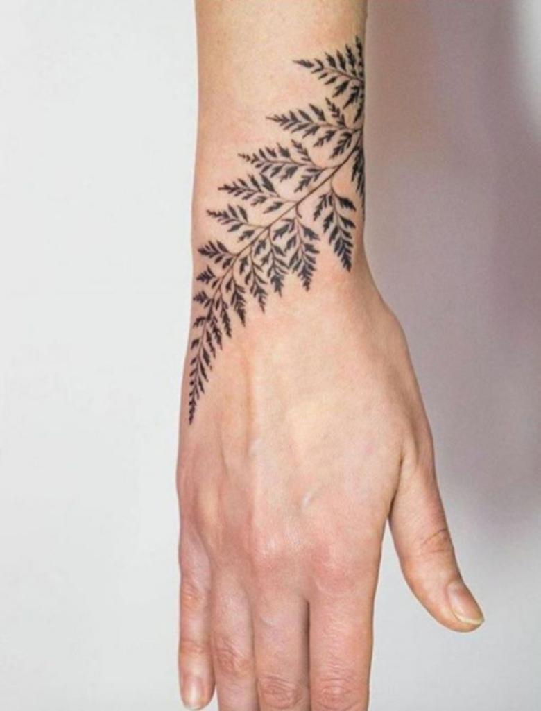 When planning to draw an elegant fern sprig on your hand, you need to decide on the place where it will be applied. For example, it could be: