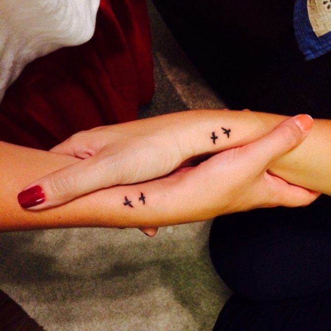 Paired tattoos for girlfriends (small variants they prefer most often) are usually tattooed on places almost invisible to others.