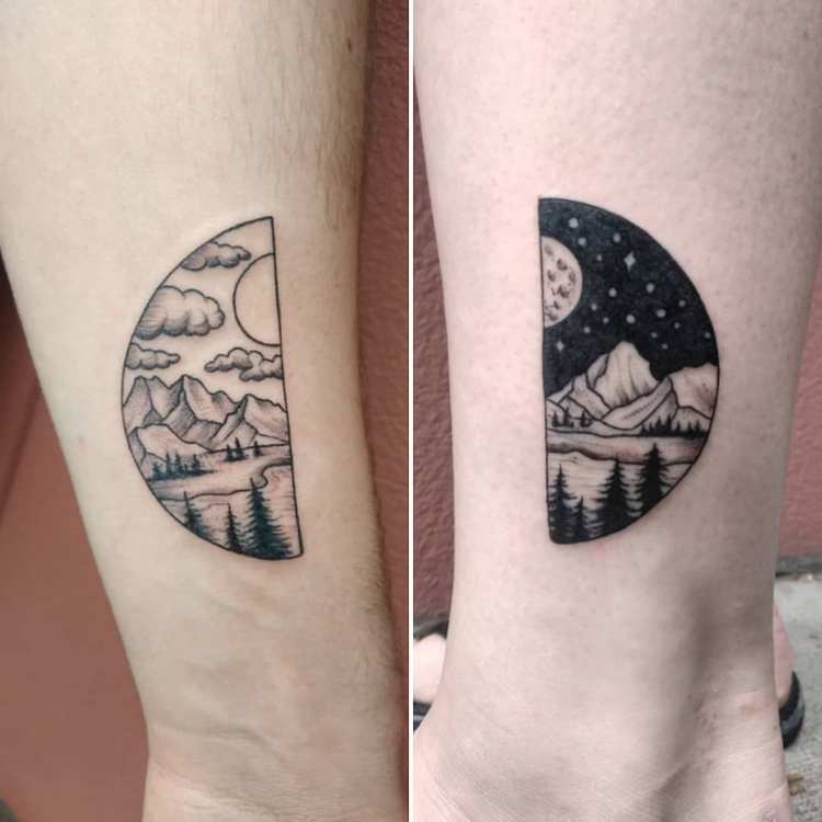 The size of the paired pictures may be different. The main thing is that they have the same meaning, and whether it's big or small doesn't matter. However, a small tattoo is easier to hide under clothing. After all, there are circumstances that require you not to flaunt your feelings. For example, the intimacy of drawings or the requirements of the dress code at work. A small tattoo can be covered with accessories, cosmetics or clothing.
