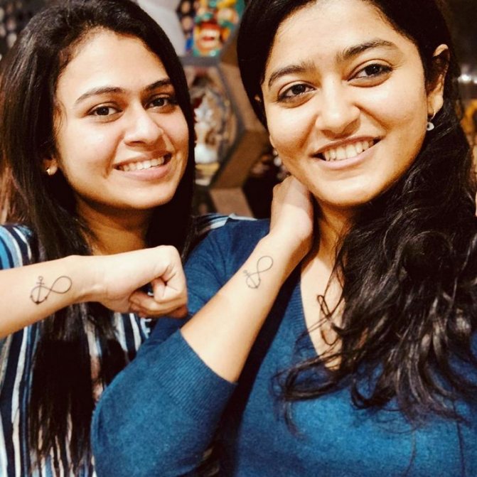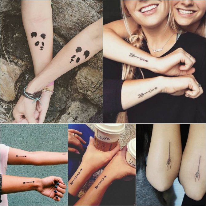 Quite often girlfriends make tattoos with a creative meaning. Especially if they are members of the same musical group or attend art school. That is, it can be a symbol that unites you in life. If another hobby connects you, make up your own drawing. For example, a tool, various symbols, phrases, floral motifs and more.