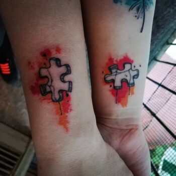 Puzzle pieces are the perfect tattoo if a lifelong friendship with a friend is to be realized. Their perfect compatibility symbolizes the fact that friendship is indestructible and lasts forever. Choose black or enter colors that identify and represent you as friends.