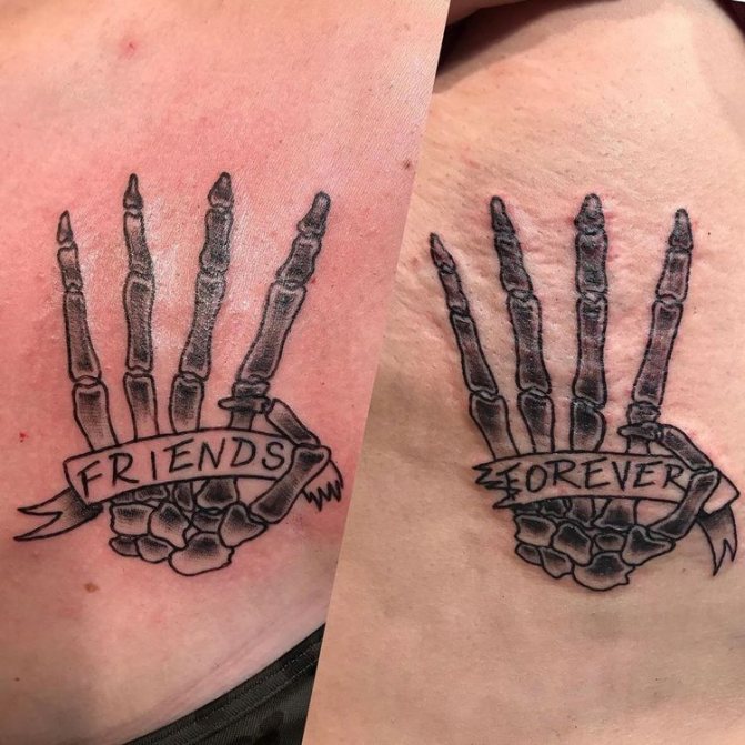 The choice of the sketch and the place for the drawing is of great importance, because it can remain on the body for life. If there is a rupture between friends, it will be painful and expensive to remove the tattoo. It is worth thinking about this before the tattooing procedure.
