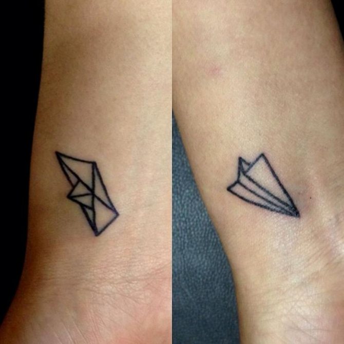 When creating paired tattoos, the images can be completely identical or complement each other, as if composed of 2 halves.