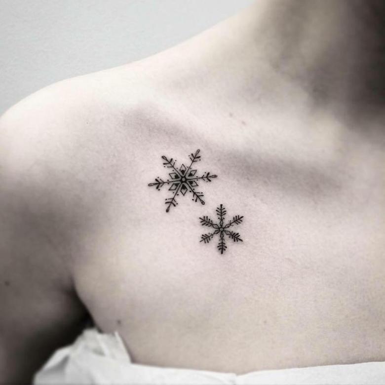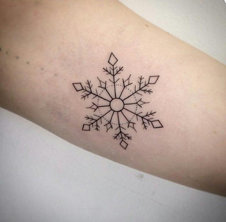 An elegant tattoo in the form of a snowflake has its own meaning. The invariable symbol of winter tells of something beautiful, but prickly and cold. There is an opinion that the owner snowflake tattoo must be an arrogant and snooty person. Is it really so? The stereotype, developed from childhood of a fairy-tale arrogant and evil woman, the Snow Queen, does not correspond to reality. The ruler of ice, frost and winds was callous and soulless. The wearer of the same tattoo is multifaceted and rich inner world.