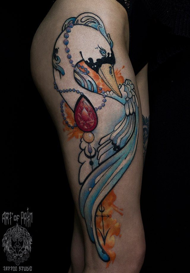 In Slavic culture, the swan is perhaps the most famous symbol of fidelity, sung in many works of art. There is a widespread myth that these birds choose a pair for themselves once and for life, and if one of the partners dies, the other commits suicide. Although ornithologists have dispelled this beautiful myth, the concept of "swan loyalty" continues to exist. In ancient culture, the swan was a symbol of high creativity and was considered the favorite of Apollo and the Muses. In Celtic mythology, this bird was considered a good messenger. So the image of the swan is positive and perfect for a tattoo.