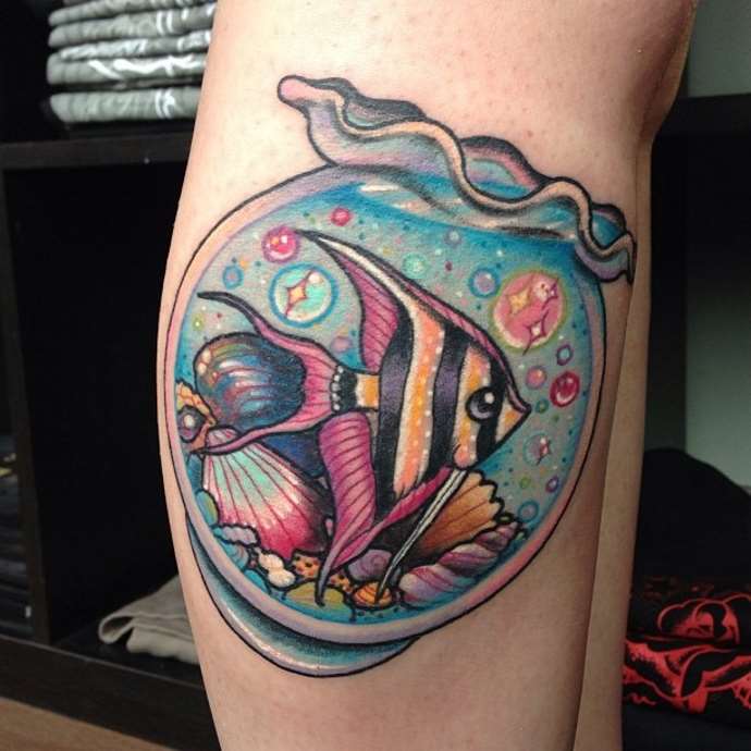 Those who want to put as much meaning as possible into their fish tattoos can easily take advantage of the play of several colors.