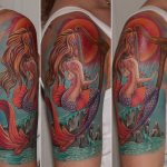 Tattoo covering the arm from shoulder to wrist - the choice not only of men, but also of bold girls. As a rule, such tattoos are decided on by creative individuals who do not give weighty importance to the opinion of others. These girls are driven by their own philosophy of life, which dictates special rules. In the case of the sleeve, the artist has a lot to do: it can be portraits, Indian paintings, blackwork, flowers and plant entanglements, abstract compositions, comic strips, old school, watercolor, landscape, biomechanics and much more.
